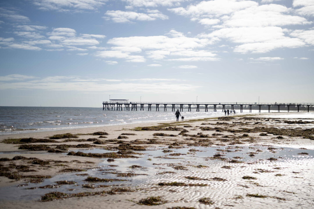 A toxic algal bloom washes dead and dying sea creatures onto Largs Beach in Adelaide, Australia, on July 12, 2025. Tracey Nearmy/Getty Images