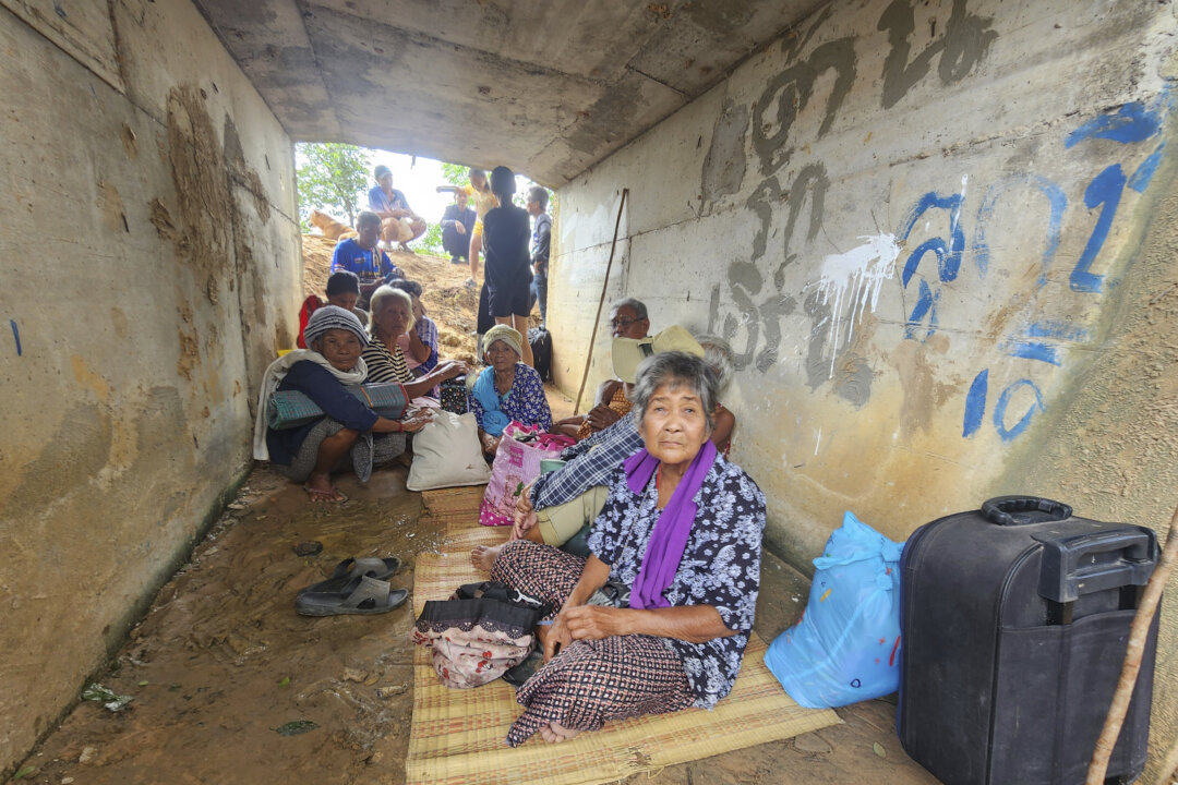 Thai people who fled clashes between Thai and Cambodian soldiers take shelter in Surin province, Thailand, on July 24, 2025. Sunny Chittawil/AP