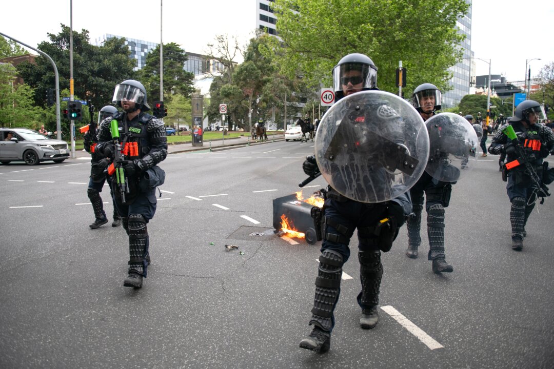 Riot police confront left-wing agitators who joined a counter protest against the “March for Australia” rally against current immigration policy in Melbourne, Australia on Oct. 19, 2025. AAP Image/Jay KoglerVictoria Police have arrested two people and released images of several others they hope to identify as part of an ongoing investigation into a violent Melbourne protest last month in which officers were allegedly assaulted.Detectives from the North West Metro Regional Crime Squad have been examining the events of Oct. 19, when counter-protesters clashed with police during the “March for Australia” rally in the CBD.