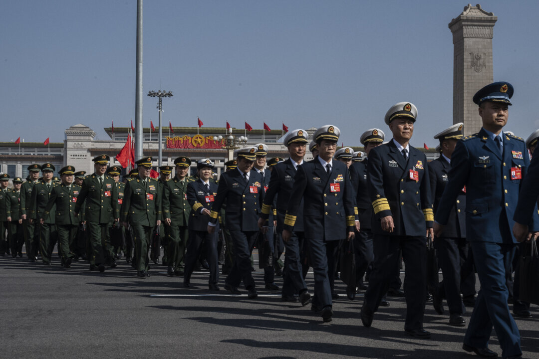 Adm. Wang Renhua (L-3) and other military delegates arrive at the closing session of China’s rubber-stamp legislature, the National People’s Congress, in Beijing on March 11, 2024. Kevin Frayer/Getty ImagesThe Chinese regime’s sweeping purges in the military establishment have ensnared three more senior commanders.Adm. Wang Renhua, former security chief of the military, was expelled for “serious violations of discipline and law,” the National People’s Congress Standing Committee, the governing body of China’s rubber-stamp legislature, announced on Feb. 24.