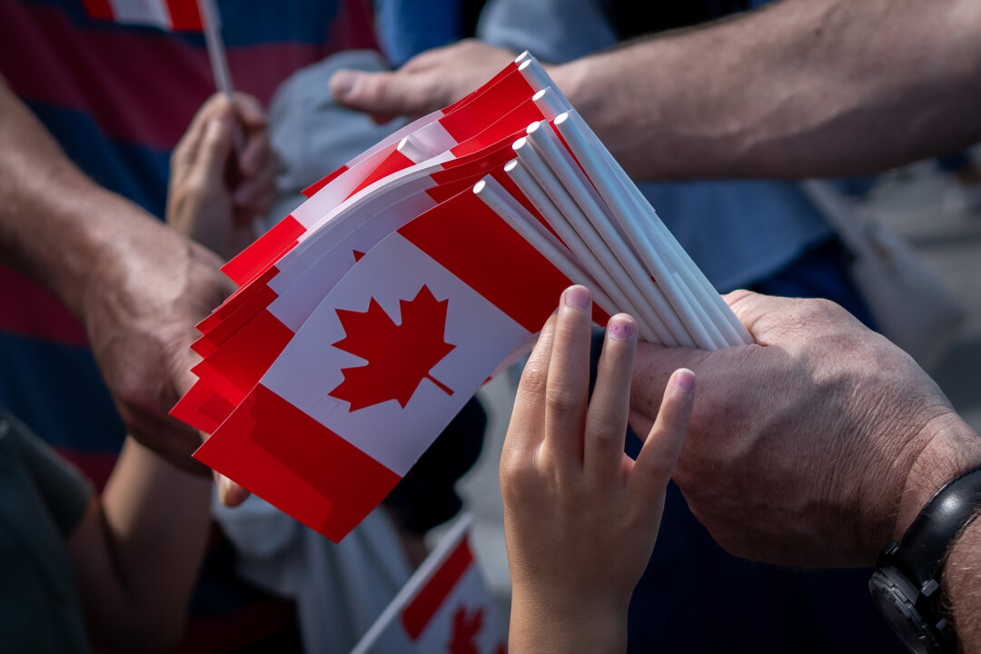 A boy reaches for a Canadian flag on Canada Day in Vancouver, on July 1, 2024. The Canadian Press/Ethan Cairns