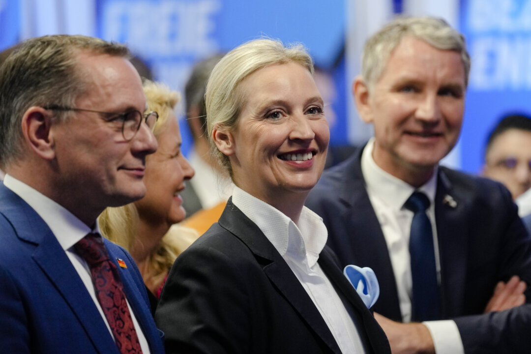 AfD Leader Alice Weidel (C) at the AfD party headquarters in Berlin after the German national election on Feb. 23, 2025. Michael Probst/AP Photo