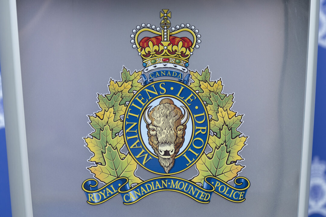 The RCMP logo is seen at a news conference on June 24, 2023. The Canadian Press/Adrian Wyld