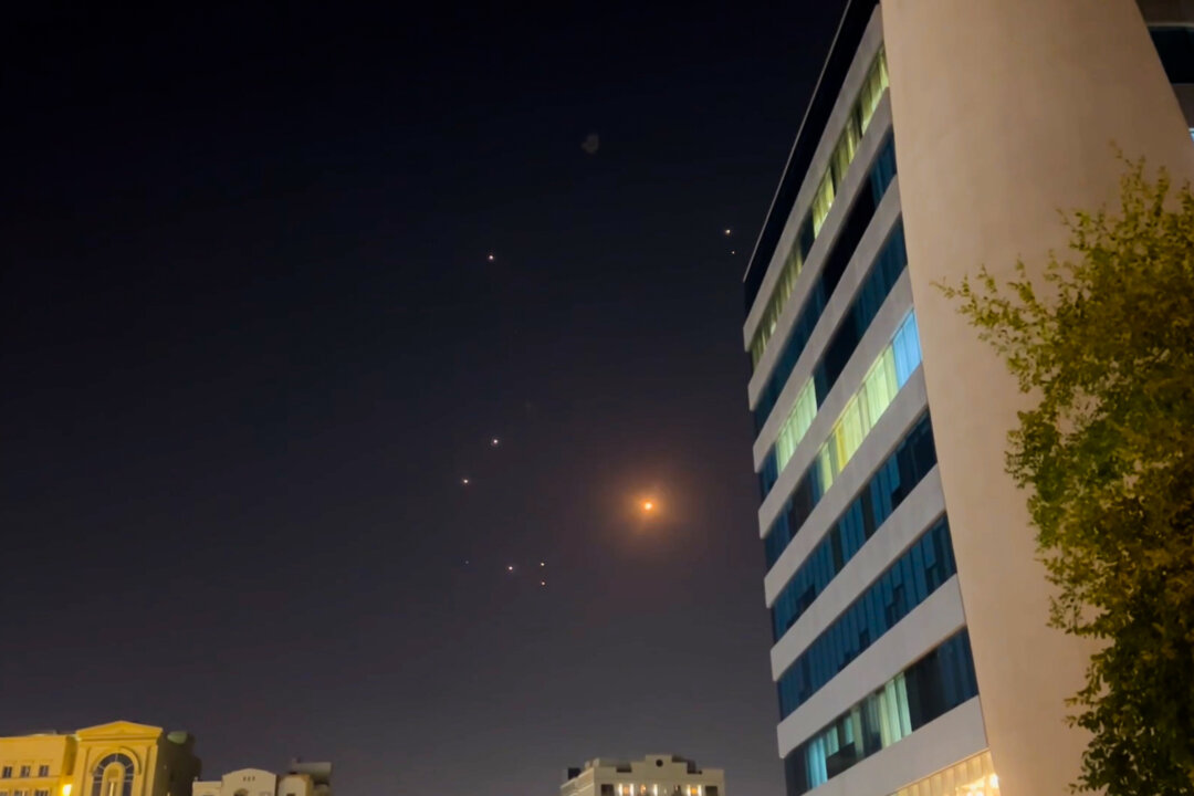 In this frame-grab made from video, missiles and air-defense interceptors illuminate the night sky over Doha after Iran launched an attack on U.S. forces at Al Udeid Air Base in Doha, Qatar, on June 23, 2025. Getty Images