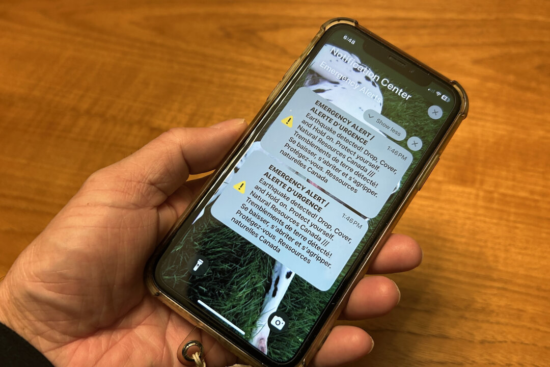 Natural Resources Canada seismologist Alison Bird says the alerts sent from the ministry’s Earthquake Early Warning system “are being evaluated,” and the timing of when people would receive a warning depends on both their distance from the earthquake and how they receive the alerts.