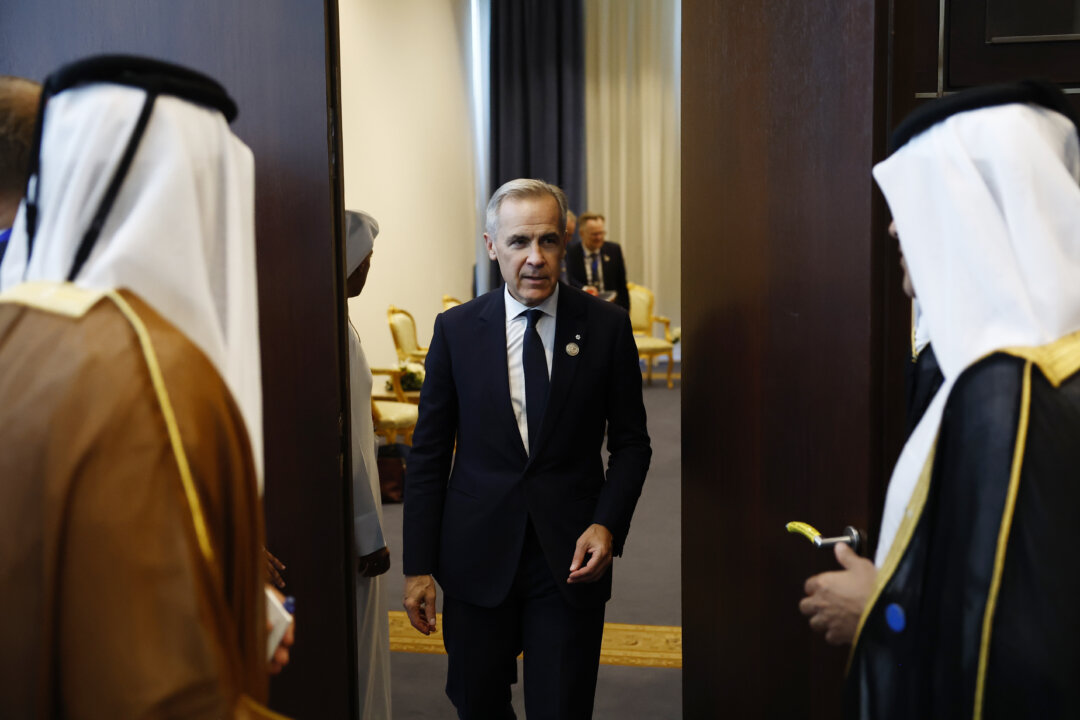Prime Minister Mark Carney leaves a bilateral meeting with Emir of Qatar Cheikh Tamim ben Hamad al-Thani at the Gaza International Peace Summit, in Sharm el-Sheikh, Egypt, on Oct. 13 2025. Yoan Valat, Pool photo via AP