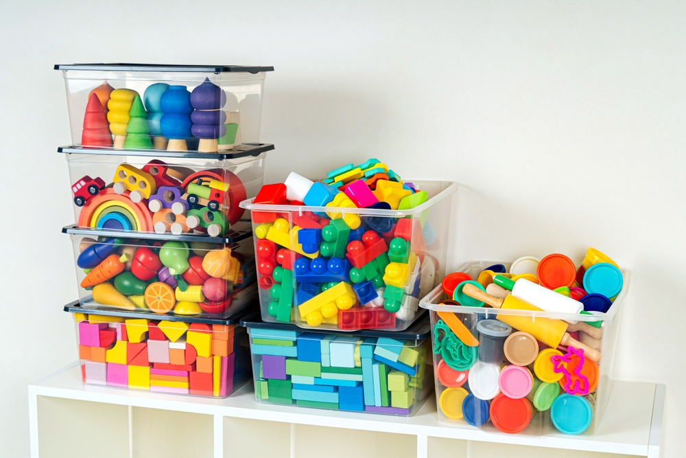 Storage bins are a great way to organize many smaller items. Igisheva Maria/Shutterstock