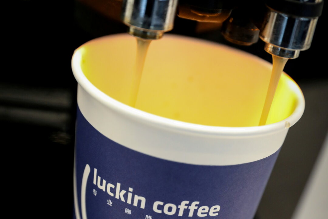A cup of coffee is poured during Luckin Coffee’s IPO at the Nasdaq Market site in New York, on May 17, 2019. Brendan McDermid/Reuters