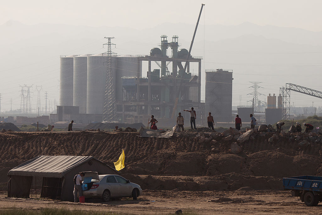 Workers before a rare-earth refinery in Baotou City, Inner Mongolia, on Aug. 19, 2012. Ed Jones/AFP via Getty Images
