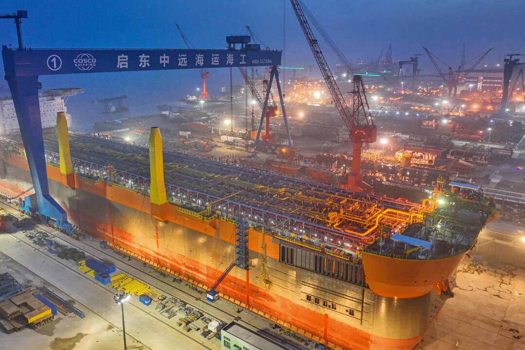 A new floating production storage and offloading vessel under construction at a shipyard in Nantong, in China’s eastern Jiangsu province, on April 17, 2023. AFP via Getty Images