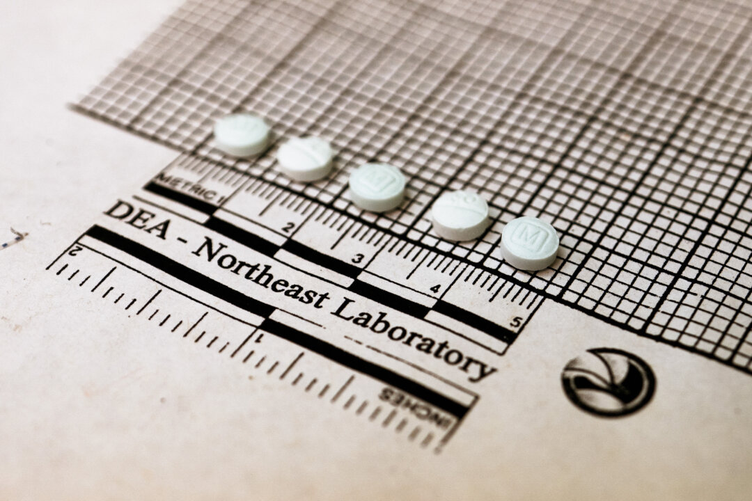 Tablets suspected to be fentanyl are placed on a graph at a Drug Enforcement Administration regional office in New York on Oct. 8, 2019. Don Emmert/AFP via Getty Images