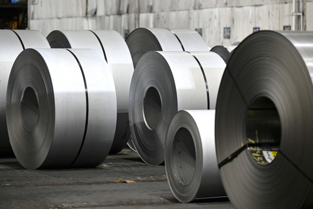 Rolls of steel are seen Rolls of steel during a rally at U.S. Steel-Irvin Works in the Pittsburgh suburb of West Mifflin, Pa., on May 30, 2025. Saul Loeb/AFP via Getty Images