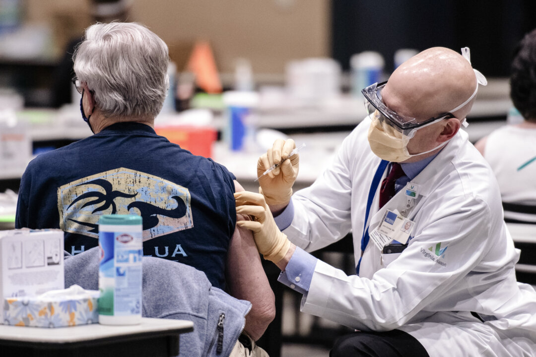 A man receives a dose of a COVID-19 vaccine in Seattle on Jan. 24, 2021. Grant Hindsley/AFP via Getty Images