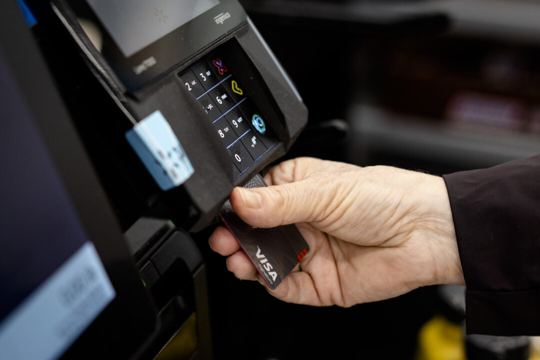 A person uses a credit card at a store in Burlington, N.J., on Feb. 5, 2025. Samira Bouaou/The Epoch Times