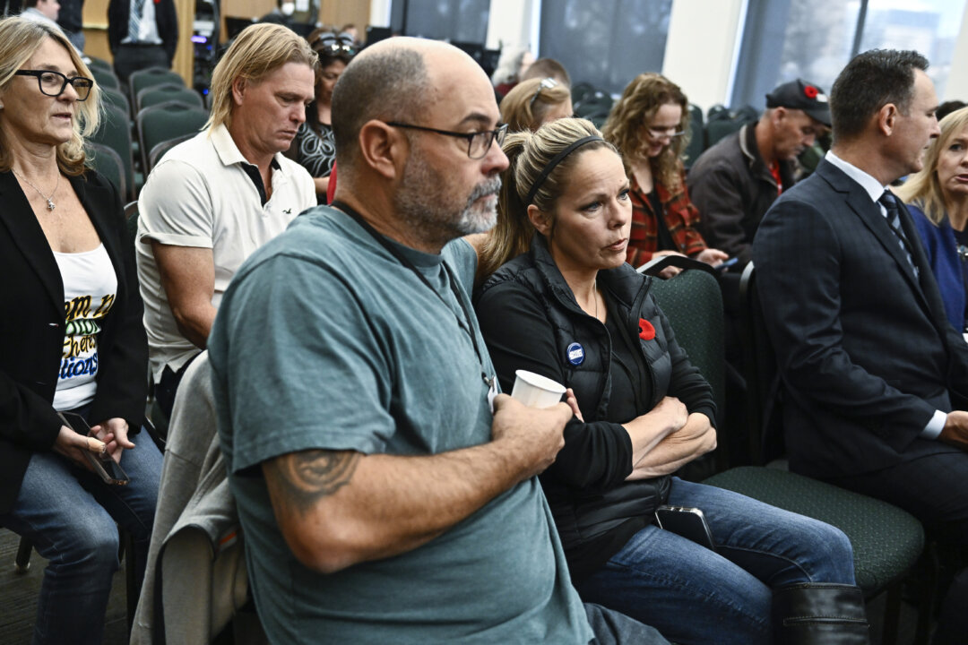 Freedom Convoy organizers Chris Barber and Tamara Lich sit in the gallery as they wait for the start of the day’s hearings at the Public Order Emergency Commission, where they were to appear as witnesses, in Ottawa on Nov. 2, 2022. The Canadian Press/Justin Tang