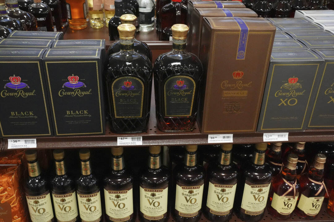 Crown Royal whisky products are seen at a Pennsylvania Fine Wine & Good Spirits in Flourtown, Pa., March 13, 2025. AP Photo/Matt Rourke