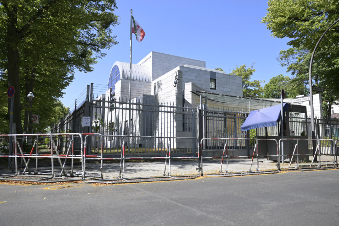 Barriers protect the front of the Iranian embassy in Berlin, Germany on June 22, 2025. Fabian Sommer/dpa via AP