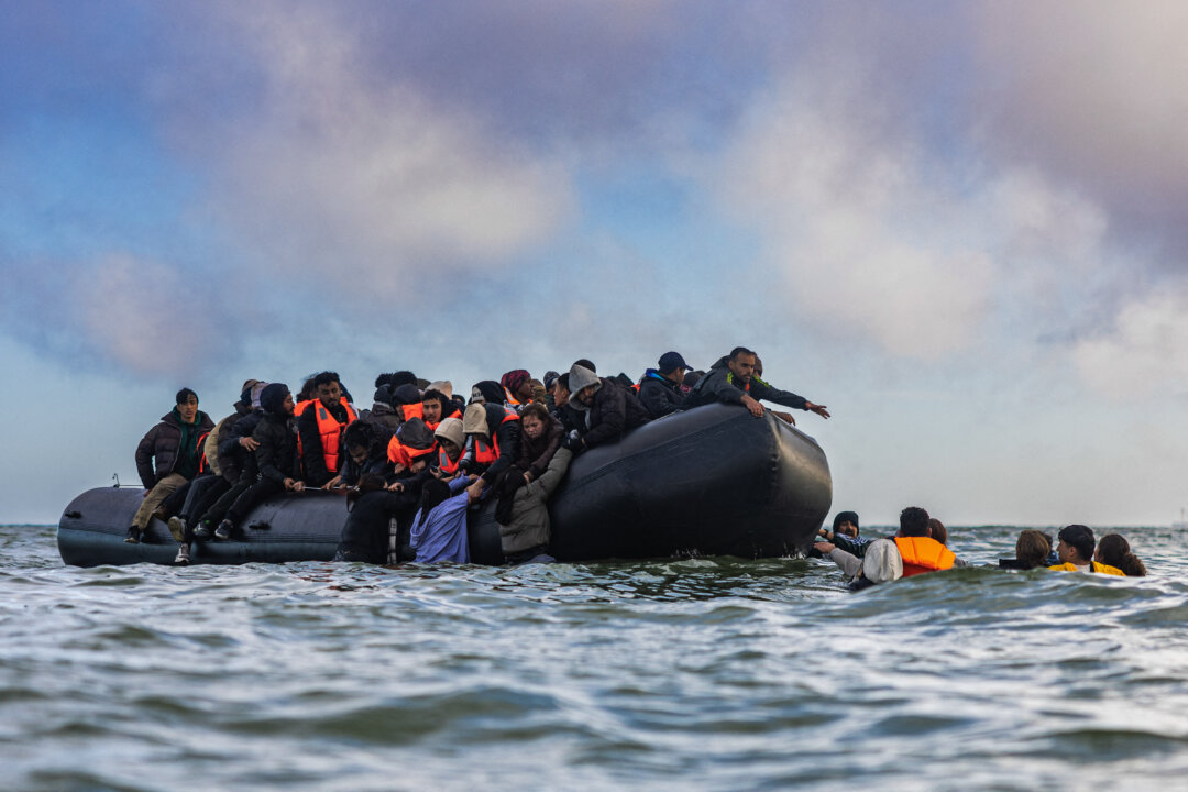 Migrants board a smuggler’s boat in an attempt to cross the English Channel, off the beach near Gravelines, north of France, on March 26, 2025. Sameer Al-Doumy/AFP via Getty Images