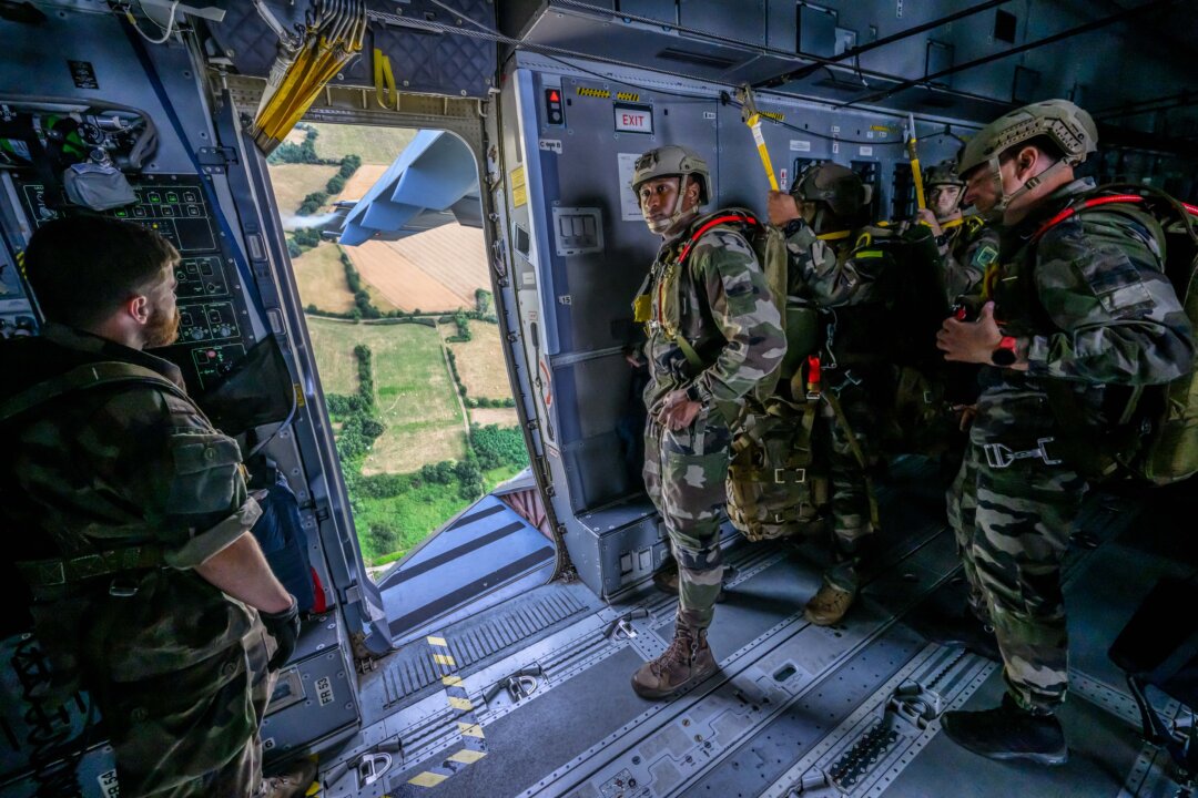 Soldiers of the 3rd Marine Infantry Parachute Regiment prepare to jump from a French military Airbus A400M as they take part in the military exercise “Cathare 25,” involving more than 800 active and reserve military personnel, near Carcassonne, France, on June 26, 2025. Ed Jones/AFP via Getty Images