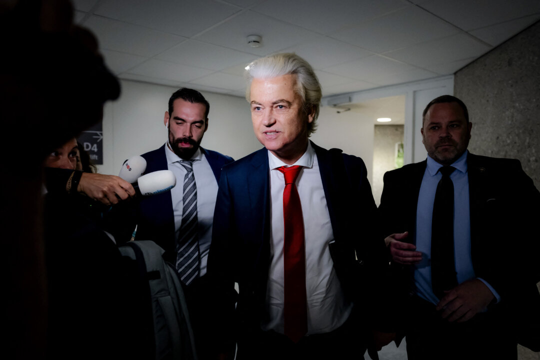 Dutch radical right party PVV leader Geert Wilders addresses the media as he arrives for the weekly coalition talks in the Lower House in The Hague, Netherlands, on June 3, 2025. Robin Van Lonkhuijsen/ANP/AFP via Getty Images