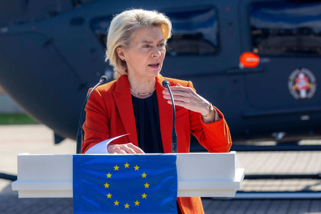European Commission President Ursula von der Leyen speaks near Medininkai, Lithuania, on Sept. 1, 2025. Mindaugas Kulbis/AP Photo