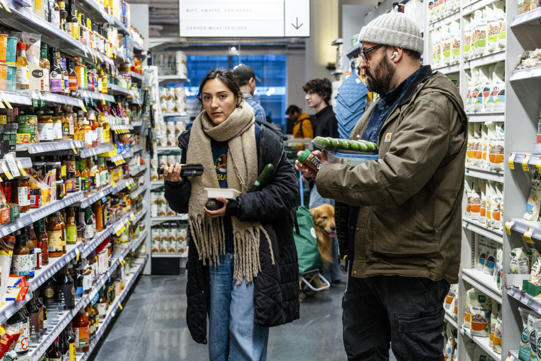 People shop at a grocery store in New York City on March 12, 2025. Samira Bouaou/The Epoch Times