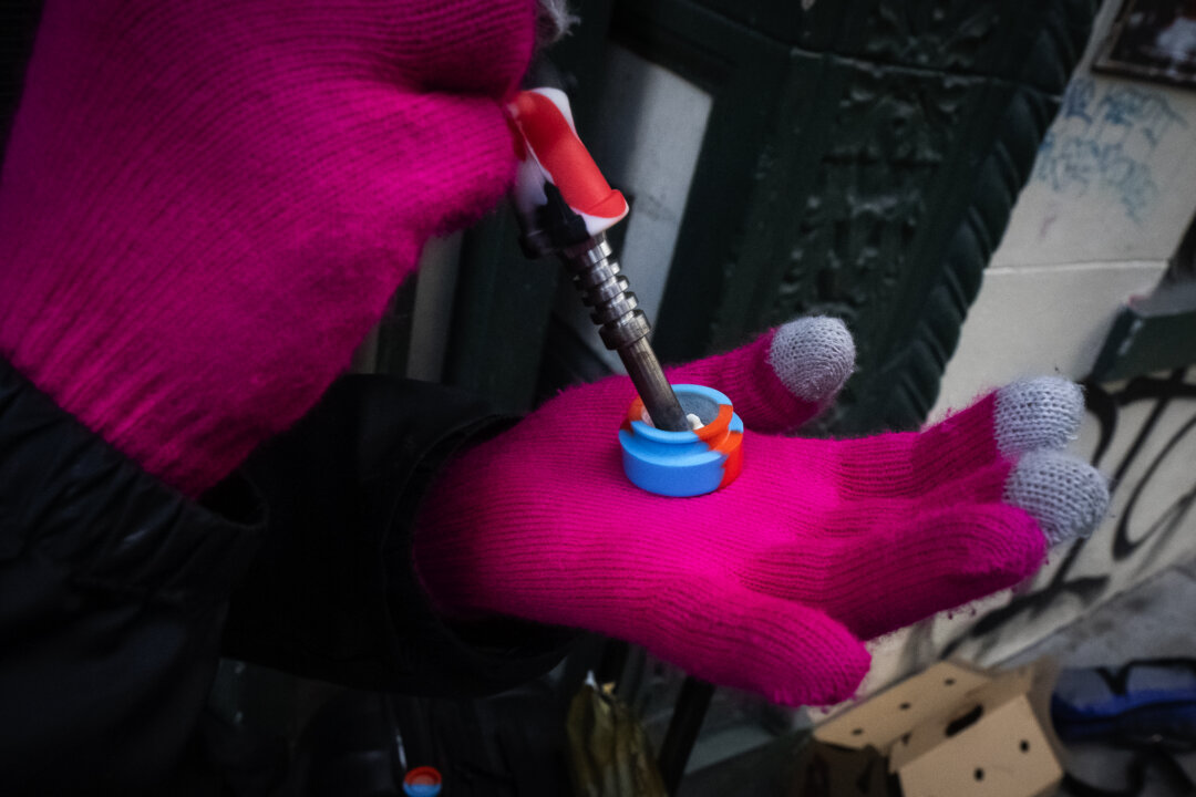 Drug addicts heat Fentanyl to prepare it for use on the streets of San Francisco, Calif., on Feb, 23, 2023. John Fredricks/The Epoch Times