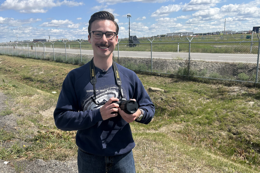 Plane spotter Corbin Johnson is shown at the Calgary International Airport on June 14, 2025. The Canadian Press/Bill Graveland