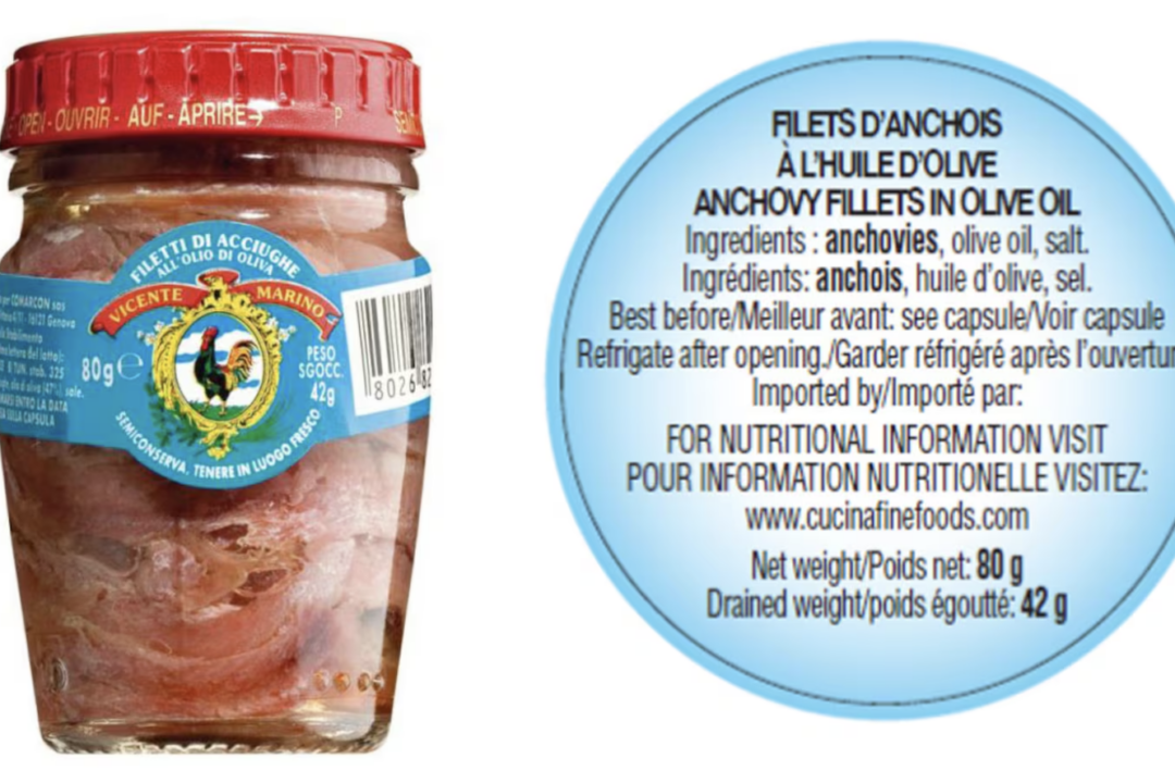 Quebec company Cucina Fine Foods is recalling Vicente Marino branded anchovy fillets following reports of adverse reactions after consumption of the product, the Canadian Food Inspection Agency (CFIA) said in a July 3 recall notice.