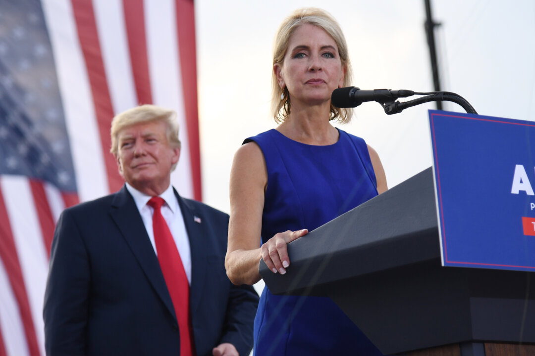 Rep. Mary Miller (R-Ill.) gives remarks after receiving an endorsement during a Save America Rally with former U.S. President Donald Trump at the Adams County Fairgrounds in Mendon, Illinois, on June 25, 2022. Michael B. Thomas/Getty Images