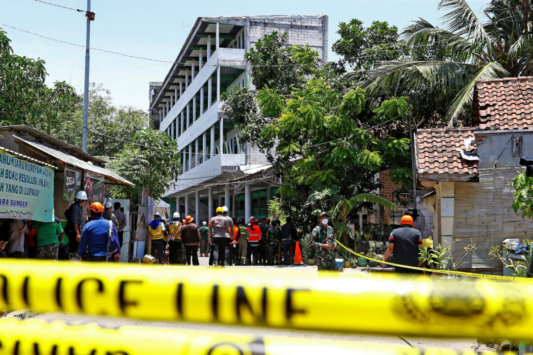 Rescuers gather near the site of a building collapse at Al Khoziny Islamic boarding school in Sidoarjo, East Java province, Indonesia, on Oct. 2, 2025. Dipta Wahyu/Reuters
