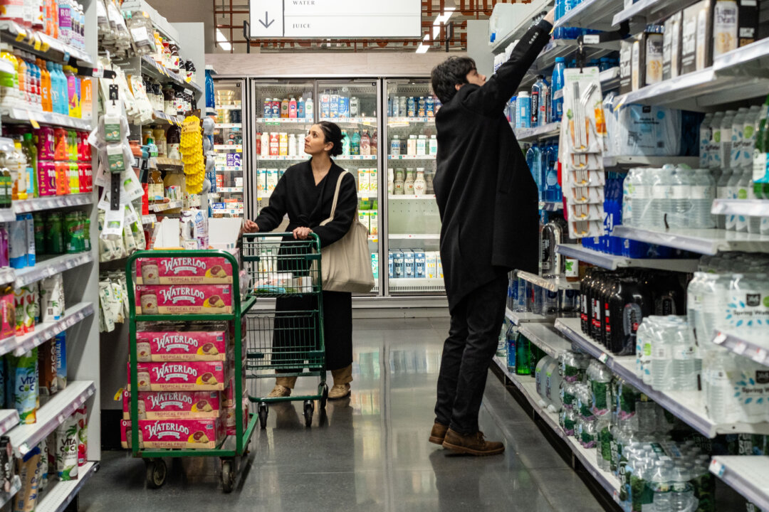 People shop at a grocery store in New York City on March 12, 2025. Samira Bouaou/The Epoch Times
