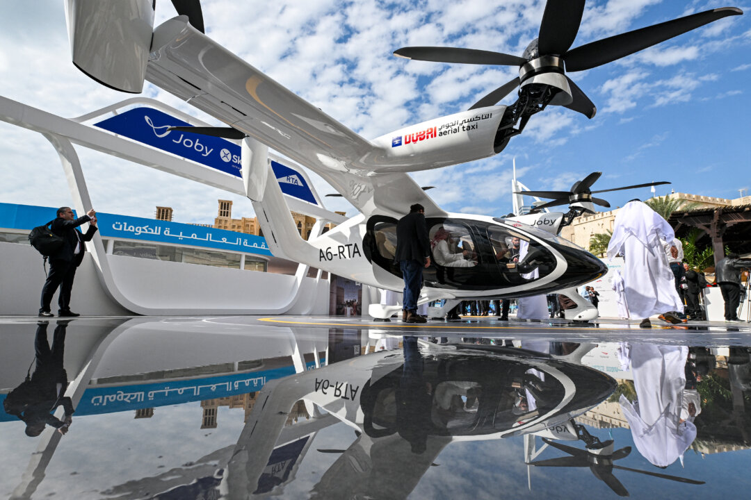 A pre-production prototype of the Joby Aviation S4 aircraft is displayed during the World Governments Summit in Dubai on Feb. 12, 2024. Ryan Lim/AFP via Getty Images