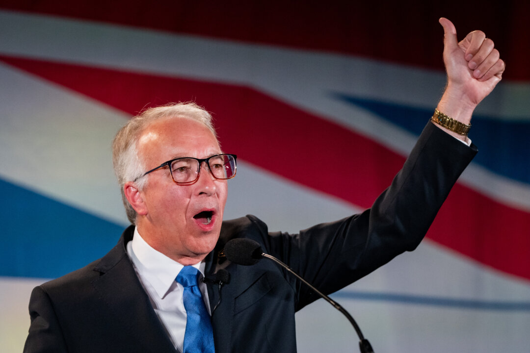 B.C. Conservative Leader John Rustad gives a thumbs up after addressing supporters on the provincial election night in Vancouver, on Oct. 19, 2024. The Canadian Press/Ethan Cairns