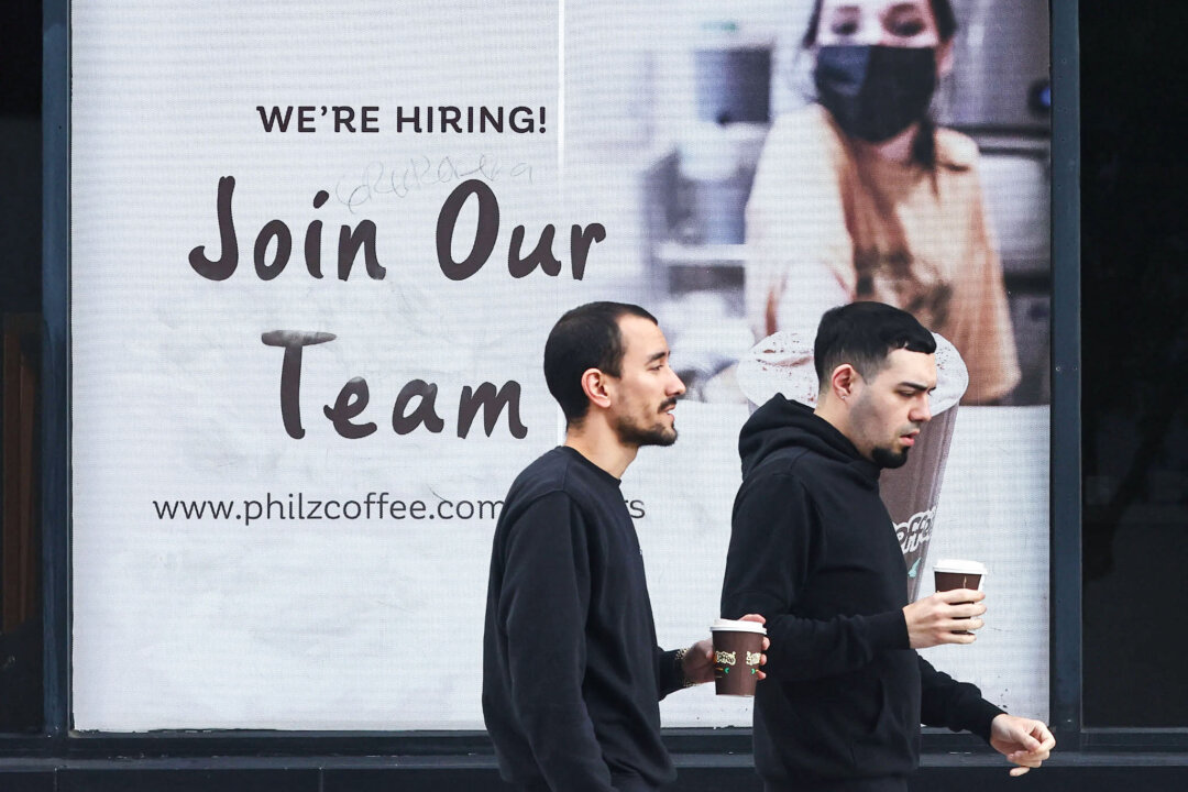 Signage for a job fair on 5th Avenue after the release of the jobs report in New York City on Sept. 3, 2021. Andrew Kelly/Reuters