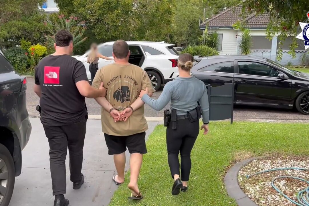 Police later raided his home and seized items including a mobile phone, cash, a replica firearm, prohibited weapons, and suspected drugs.