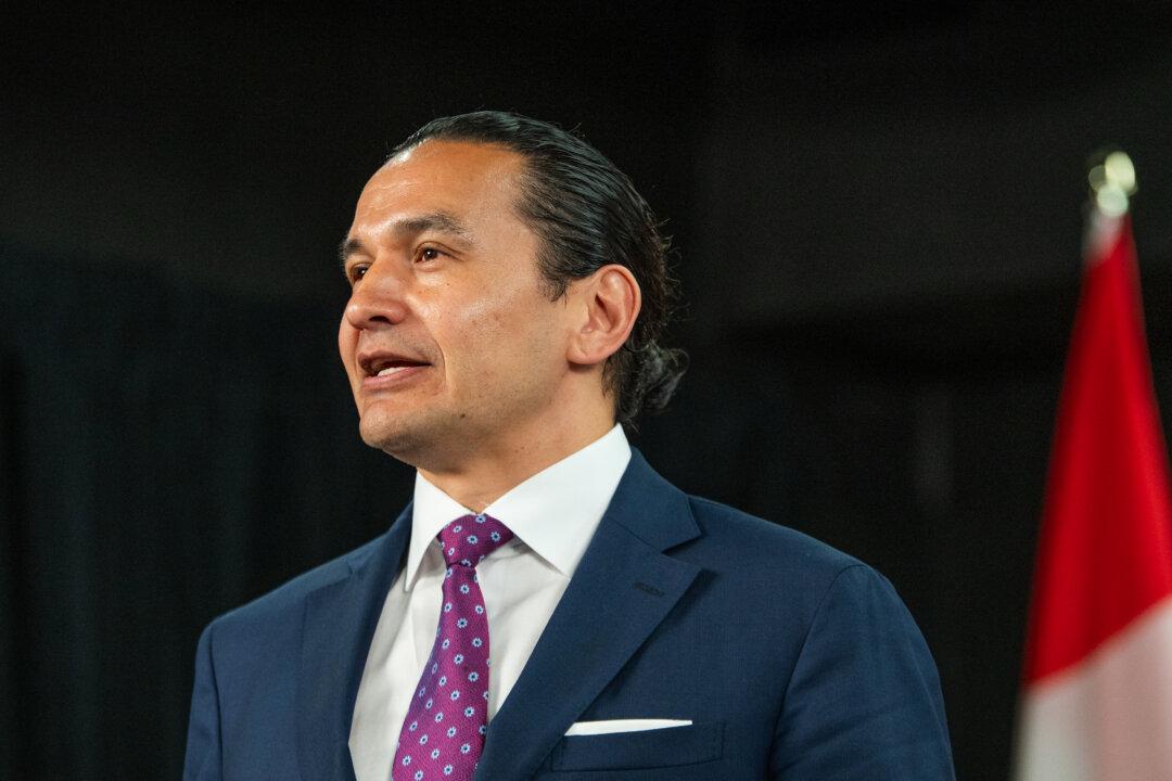 Manitoba Premier Wab Kinew speaks at a press conference at Queen’s Park in Toronto on May 14, 2025. The Canadian Press/Laura Proctor
