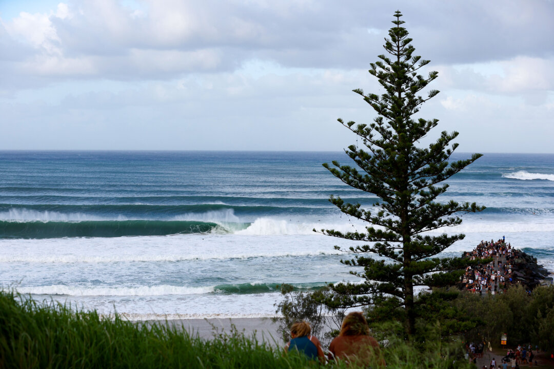 Crowds watch on as a surfer rides a wave at Kirra Beach in Gold Coast, Australia, on March 4, 2025. Chris Hyde/Getty Images