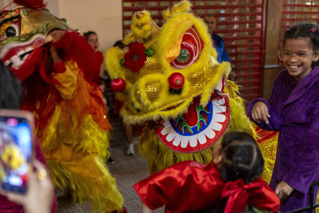 In Malaysia, the crackling of firecrackers greeted the new year outside Guan Di temple in the capital, Kuala Lumpur, followed by lion dances to the rhythmic beat of drums and small cymbals.