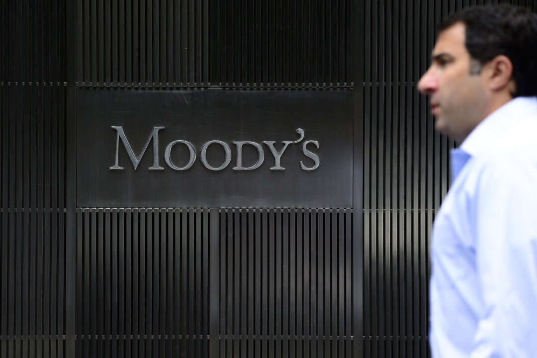 A sign for Moody’s rating agency at the company headquarters in New York City, in an undated file photograph. Emmanuel Dunand/AFP via Getty Images