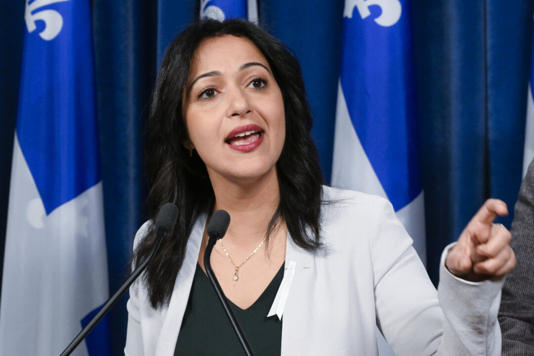 Quebec Solidaire MNA Ruba Ghazal responds to media questions at a news conference, at the legislature in Quebec City, on Nov. 29, 2023. The Canadian Press/Jacques Boissinot