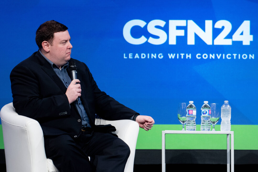 Andrew Lawton speaks during the Canada Strong and Free Network event in Ottawa on April 12, 2024. The Canadian Press/Spencer Colby
