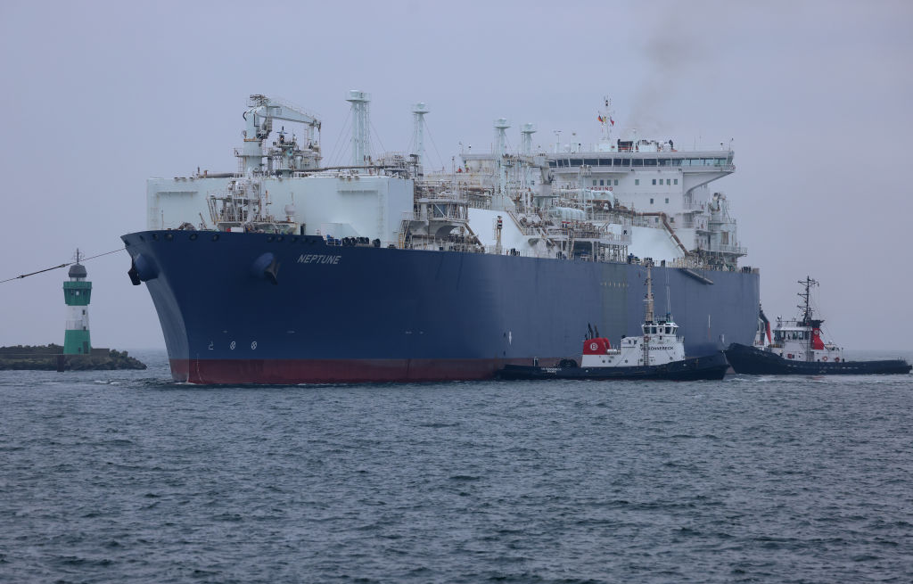 A ship carrying liquefied natural gas (LNG) arrives at Mukran Port in Sassnitz, Germany, on Nov. 23, 2022. Sean Gallup/Getty Images