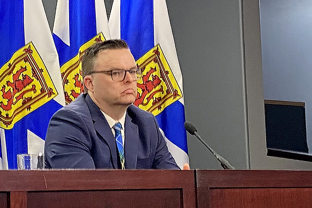 Nova Scotia Education Minister Brendan Maguire takes part in a press conference in Halifax on Feb. 22, 2024. The Canadian Press/Keith Doucette