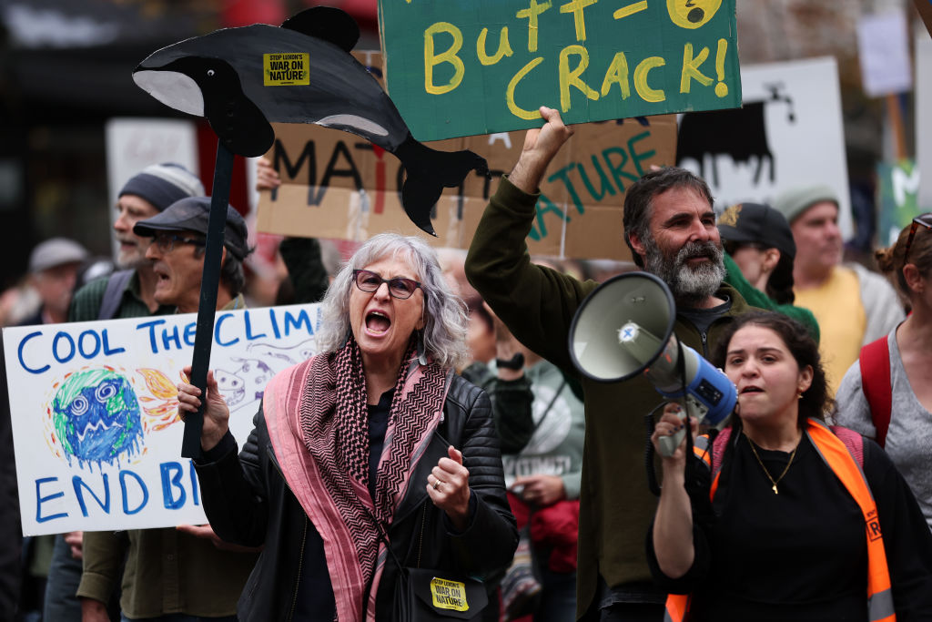 People march down Queen Street in protest in Auckland, New Zealand, on June 8, 2024. Fiona Goodall/Getty Images