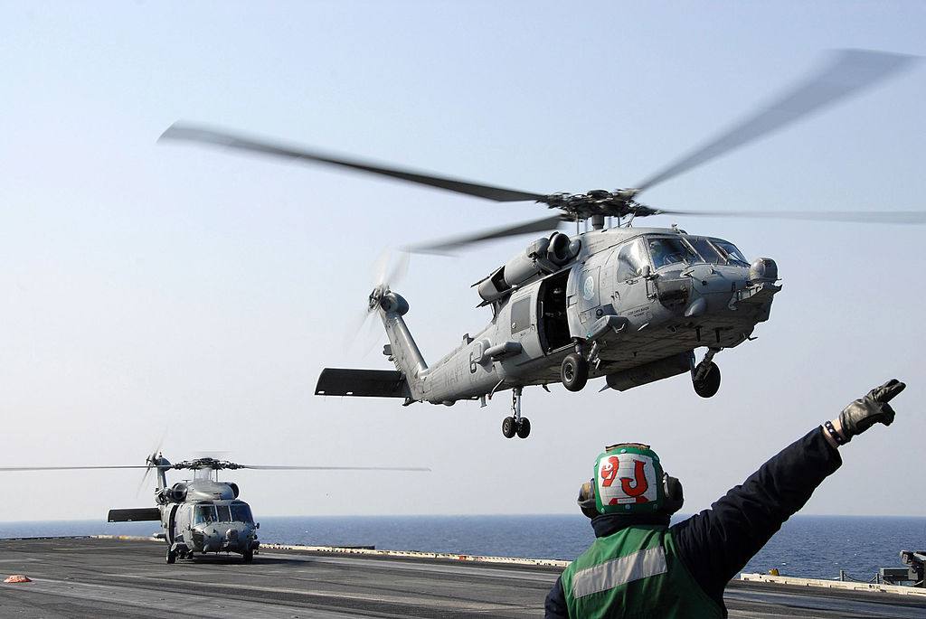 This handout image provided by U.S. Navy shows an HH-60H Sea Hawk helicopter launching off the flight deck of the aircraft carrier USS Ronald Reagan. Photo by Mass Communication Specialist 3rd Class Anthony W. Johnson/U.S. Navy via Getty Images