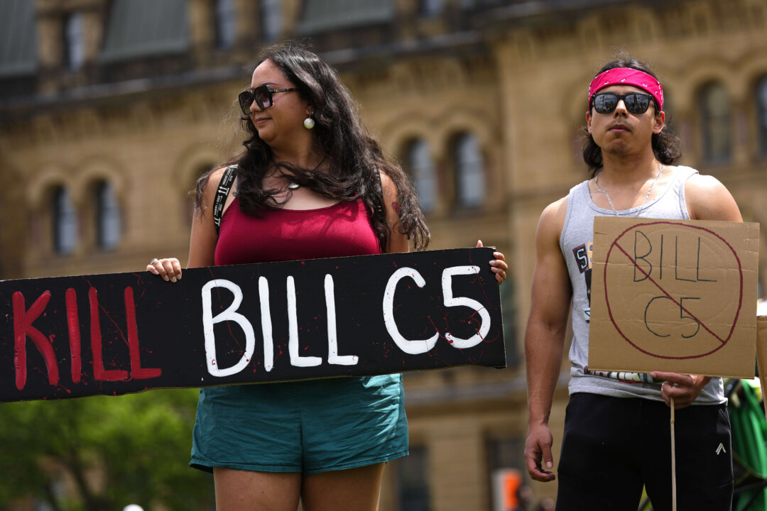 People rally against Bill C-5 on Parliament Hill in Ottawa, on June 17, 2025. THE CANADIAN PRESS/Justin Tang
