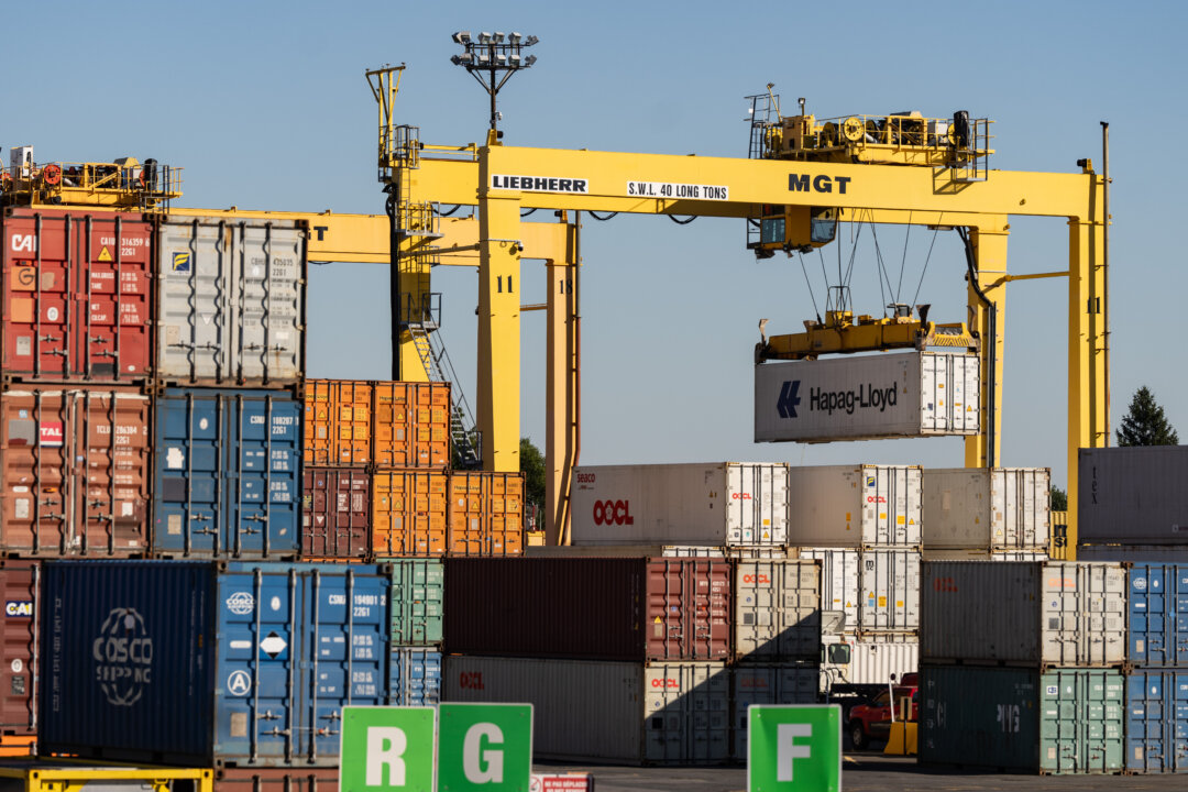 Shipping containers are moved in the Port of Montreal on Sept. 30, 2024. The Canadian Press/Christinne Muschi