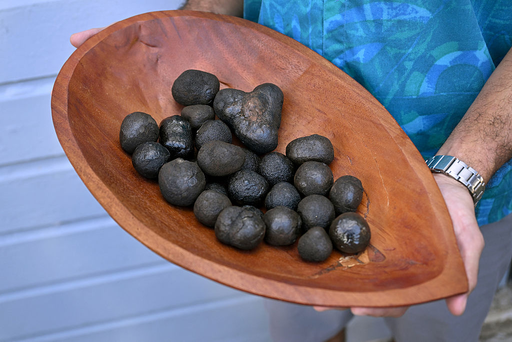 A photo taken on June 12, 2025, on Rarotonga in the Cook Islands, shows polymetallic nodules, bulbous lumps of rock that are rich in battery metals such as cobalt and nickel which carpet huge tracts of Pacific Ocean seabed. WILLIAM WEST/AFP via Getty Images