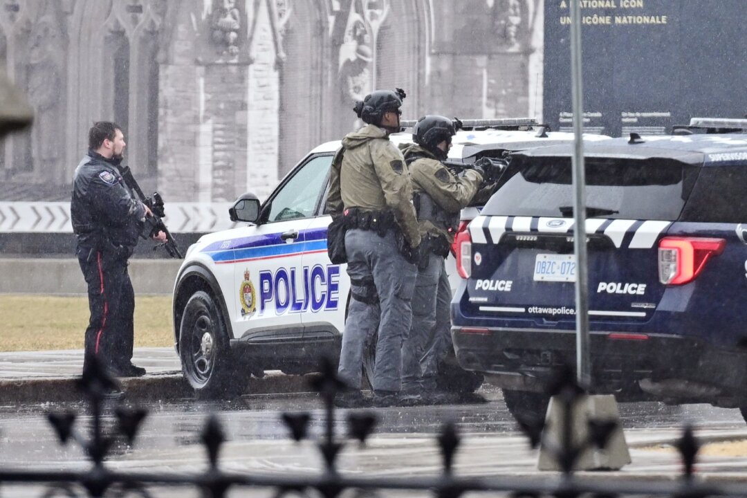 Members of the Ottawa police service cordon off an area during an incident at Parliament Hill in Ottawa on April 5, 2025. The Canadian press/Spencer Colby